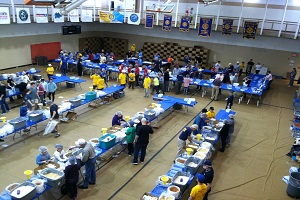 Rotarians and community volunteers gather once a year to package food to be sent to those who are in need in western North Carolina and seed packets designed for the specific country’s overseas.